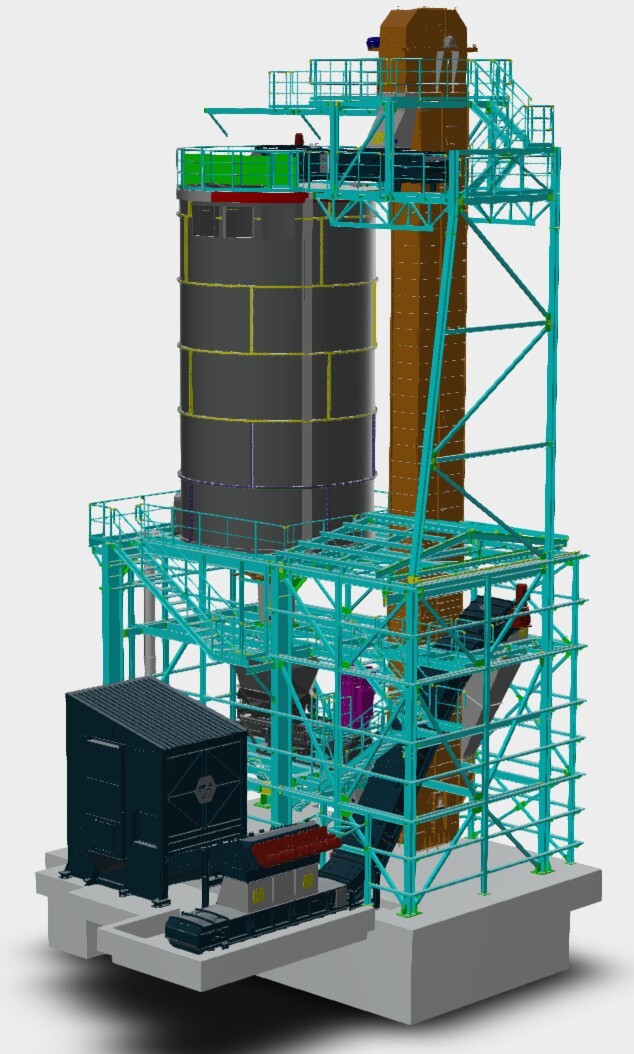 Jedná se o komplexní systém zahrnující příjmovou stanici, dopravní trasy, skladování v ocelovém sile a přesné pneumatické dávkování paliva do pece.